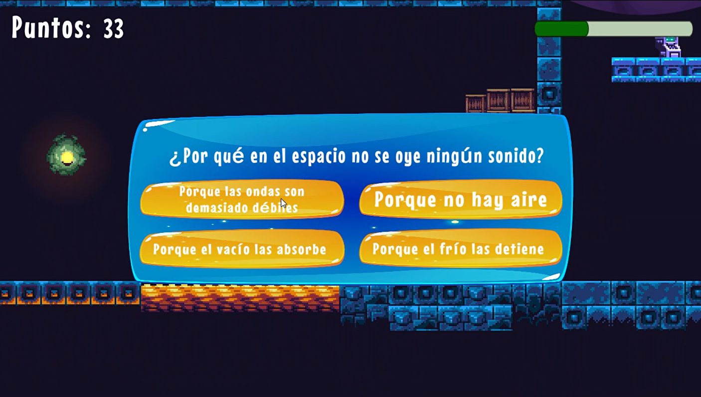 En un mundo lleno de plataformas flotantes, trampas y misterios, un explorador equipado con un jetpack se aventura a superar cada desafío y alcanzar su objetivo. El jugador debe saltar, volar y esquivar peligros mientras recoge puntos de energía que le permiten mantenerse en el aire. A lo largo del camino, se encontrará con enemigos, obstáculos mortales y preguntas educativas que pondrán a prueba tanto su habilidad como su conocimiento.